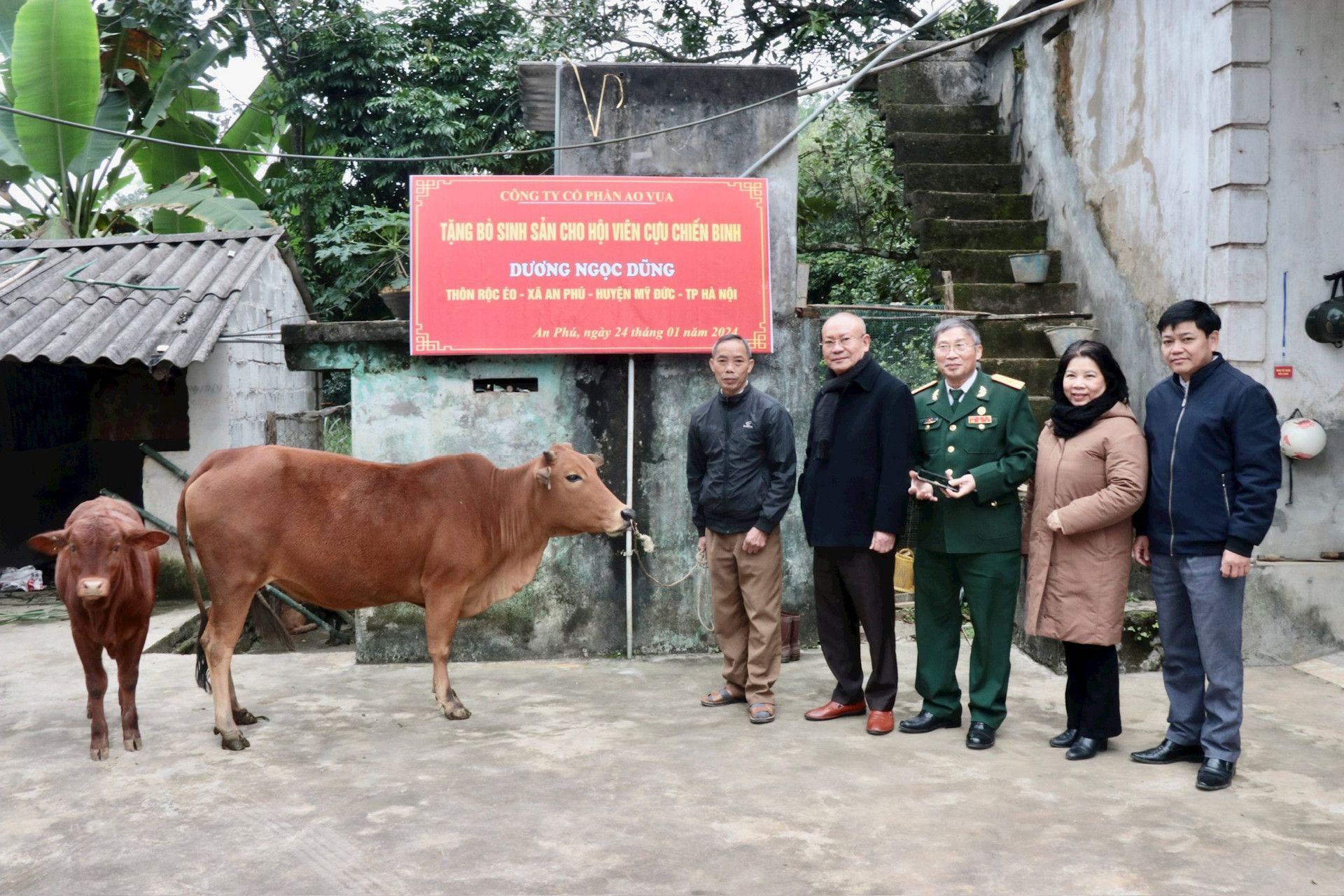 Ngày 24-1, nhân dịp Tết cổ truyền Giáp Thìn 2024, Công ty Cổ phần Ao Vua phối hợp với Báo Hà Nội mới, Hội Cựu chiến binh huyện Mỹ Đức tổ chức trao tặng 2 cặp bò sinh sản cho 2 cựu chiến binh có hoàn cảnh khó khăn trên địa bàn.